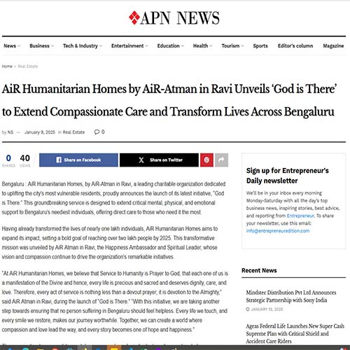 AiR – Atman in Ravi, the visionary founder of AiR Humanitarian Homes, is a Spiritual Mentor, Transformational Author, Happiness Ambassador, Singer, and Philanthropist. Once a trailblazing entrepreneur who revolutionized retail in India, AiR chose to walk away from a flourishing business empire at the pinnacle of success. In 40 Years of his journey of serving humanity, he has embraced a higher calling to dedicate his life to Humanitarian, Inspirational, and Spiritual work.